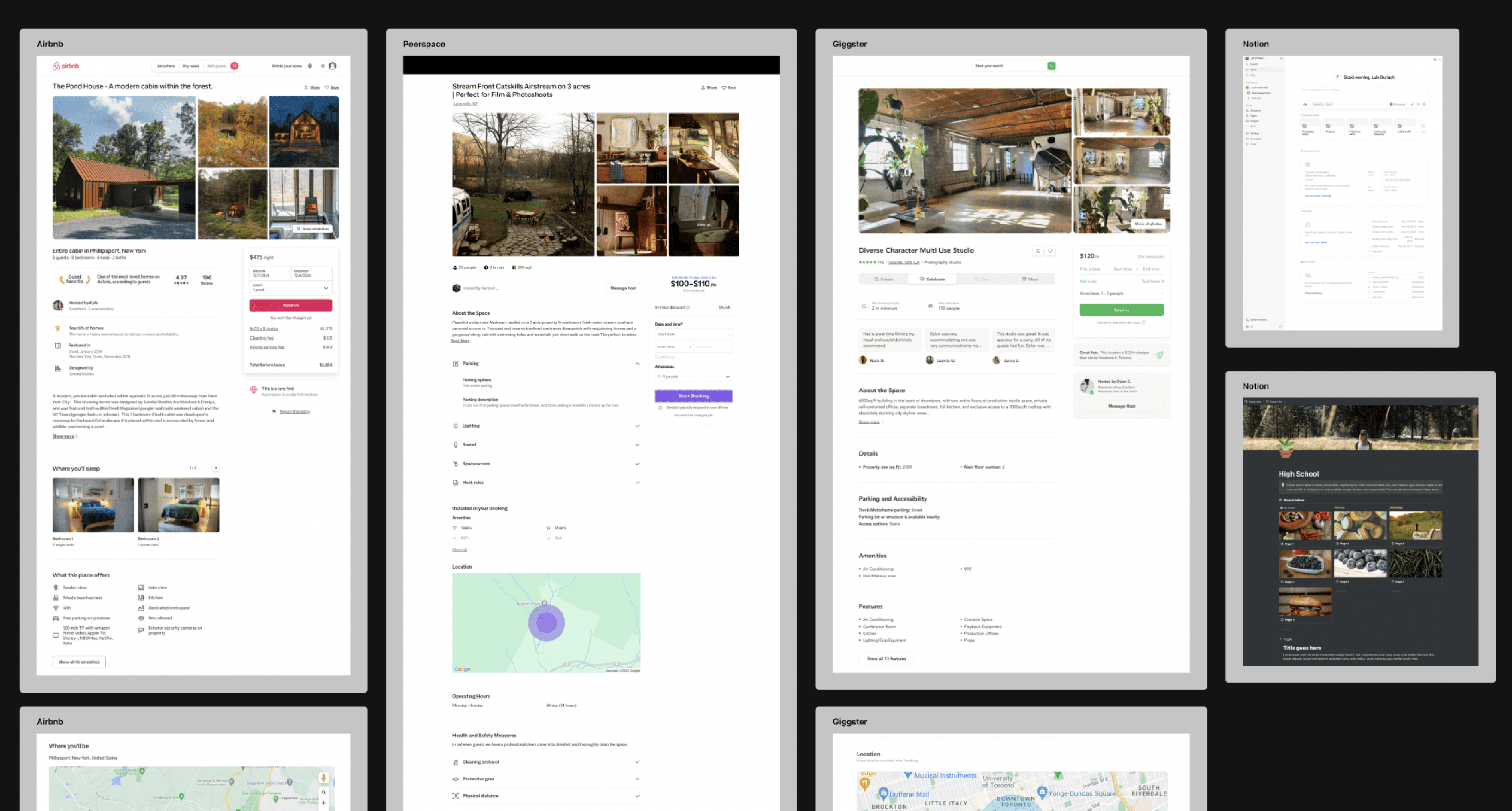 Before defining what Locale Scout could be, I studied how others organize locations- direct competitors like Location Scout to commercial spaces like Airbnb, Giggster.