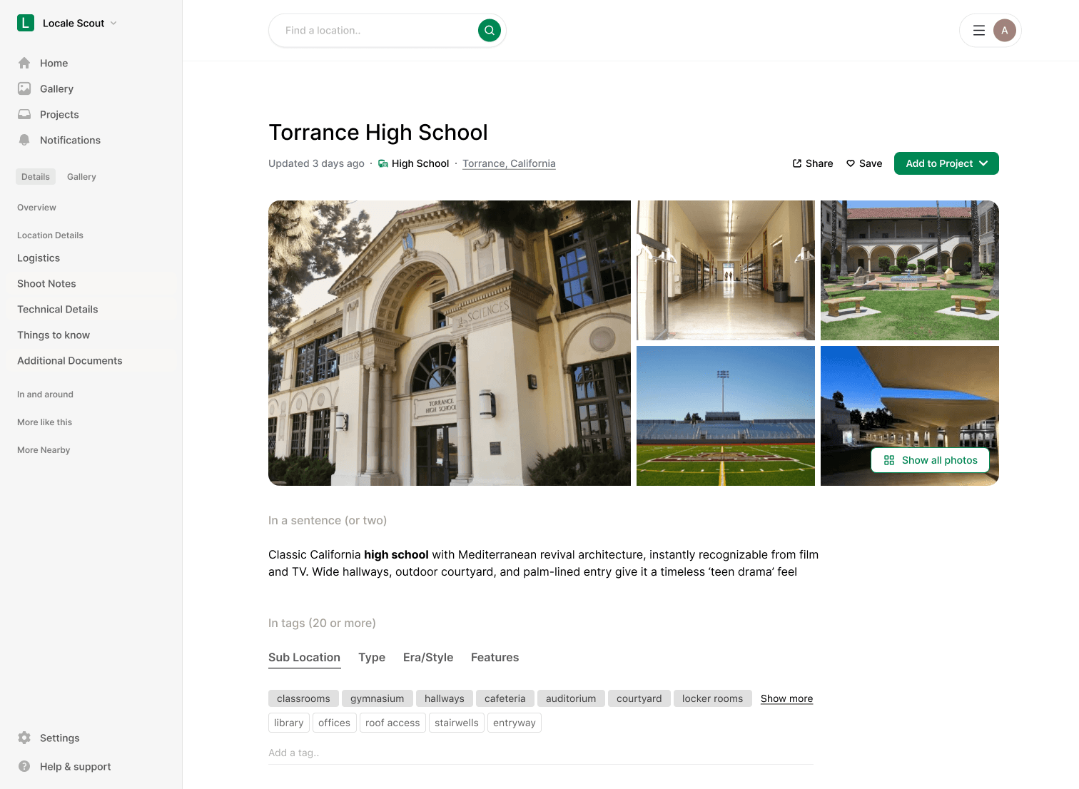After early research confirmed a need for an organized, image-based location database, my task was to synthesize these findings, and define what that actually looked like in practice. I worked with Locale Scout’s founder and visual designer to translate insights into a cohesive product experience, shaping the structure, interactions, and visual hierarchy for the location detail and gallery flows.