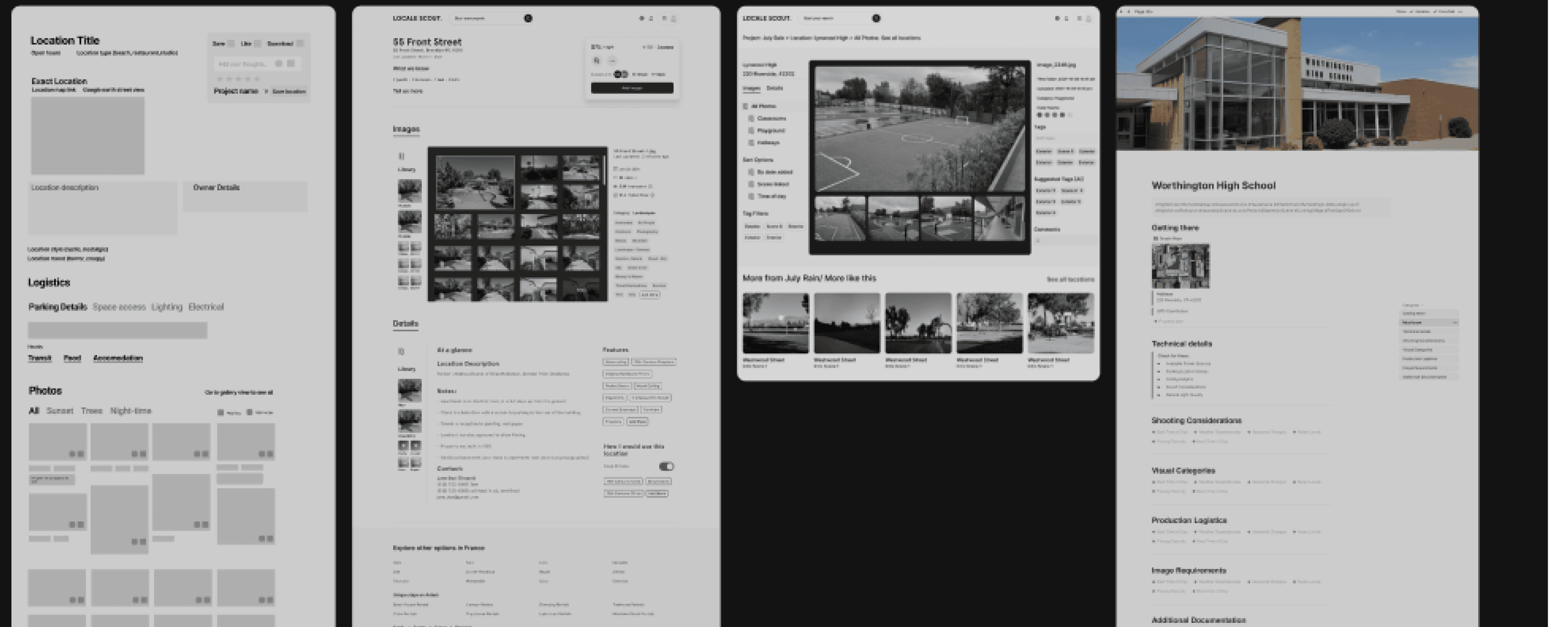 The final concept merged structured viewing with creative flexibility; pairing a detailed, scrollable Location Detail page with a connected Gallery view for easy context switching.